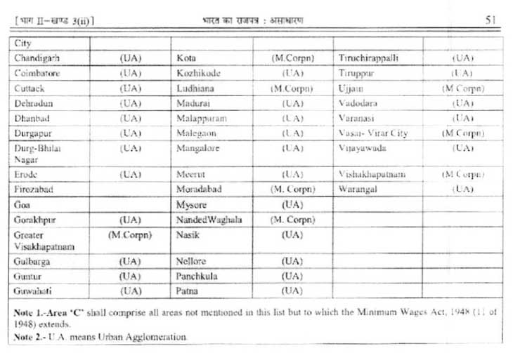 अगर इस चार्ट में आपके शहर (City) का नाम नहीं आ रहा है तो घबराने की जरुरत नहीं है. आप C Area कैटेगरी में माने जायेंगे. उपरोक्त चार्ट की मद्दत से आप खुद से देख सकते हैं कि आप किस शहर में हैं और किस एरिया कैटेगरी में आते हैं. इसके साथ ही आप तय कर सकते है कि Central Government ने आपके लिए एक दिन का कितना Minimum wage निर्धारित किया है. ऊपर दिया गया